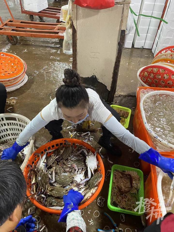 前段时间,舟山国际水产城的统货螃蟹的价格都要达到1000元一筐,“今年电商又比往年要多,大家都还缺货,人比螃蟹多,要收螃蟹的话,只能高价去收购。”