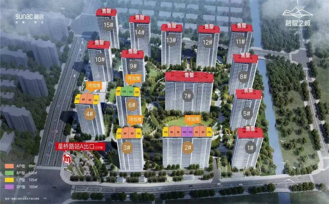 融耀之城,是42万方地铁TOD综合体的住宅部分,与星桥站无缝对接,由融创开发打造,目前已经是准现房状态。在去年9月开盘后,融耀之城就进入销售暂停期,整个项目还剩南面的2、3、4、6号楼待售,也是距离地铁最近的楼幢。