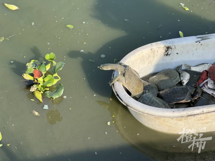 这个季节,只要天气晴好,甲鱼最喜欢晒太阳。