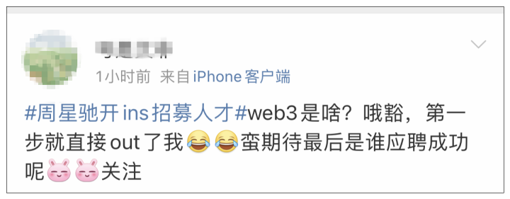网友炸开了锅。有人想要临时抱佛脚:“啥是Web3?”“现在学还来得及吗?”有人刚好懂行:“选我选我选我!”也有“事业粉”顺便催促起新片:“赶快出来拍电影。”