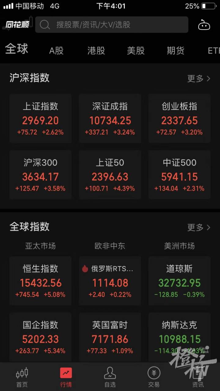 今日,A股三大指数集体上涨,出现反弹行情。截至收盘,上证指数涨2.62%,深证成指上涨3.24%,创业板指则大涨3.2%,两市超4400只股票上涨,市场人气有所修复。