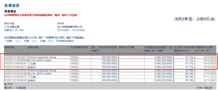 港交所信息还显示,被强制出售的股份虽然由中国恒大集团及其子公司持有,但许家印为中国恒大集团的控股股东,根据证券及期货条例,他被视为在这些股份中拥有权益。