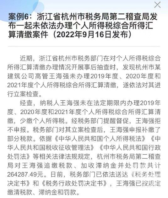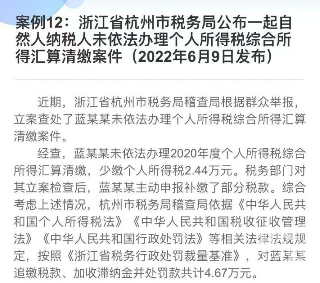 个人所得税App上公示了15个虚假申报案例,包括虚假填报专项附加扣除、应汇算未汇算等,其中杭州有两起案例,分别被处追缴税款、加收滞纳金并处罚款4.67万元和26.43万元。