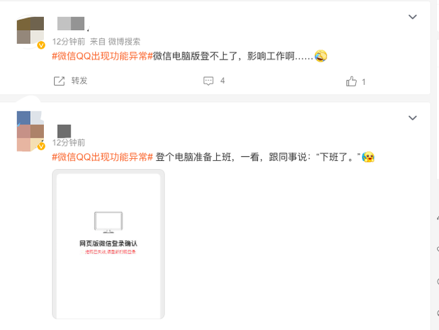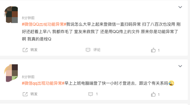 今天一早,#微信QQ出现功能异常#冲上了热搜第一!