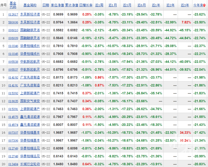 公开资料显示,长城新能源股票发起式基金的基金经理是杨宇,该基金近6个月的回报率为-21.89%,近1个月的回报率为-4.22%,在二级市场表现不佳。而和长城新能源股票发起式基金一样,年内亏损超20%的基金多达23只,其中不乏有像华泰柏瑞成长智选混合、广发先进制造股票发起式、长城行业轮动混合这样的头部基金公司。