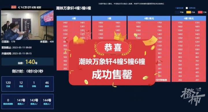 钱江新城二期高端楼盘的热度则表现在低弃选率。潮映万象轩4月底的中签率为20.44%,120套房源选至140号结束。潮映华岸府164套房源吸引了983组家庭参与登记,选房时选至205号结束,其中大户型更为受欢迎。