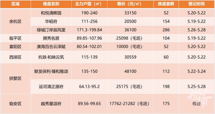 截至发稿时,本周可登记的楼盘有7个,其中比较有亮点的是两个人才共有产权房,分别为临平区的拥秀名居和拱墅区的运河清正源府。
