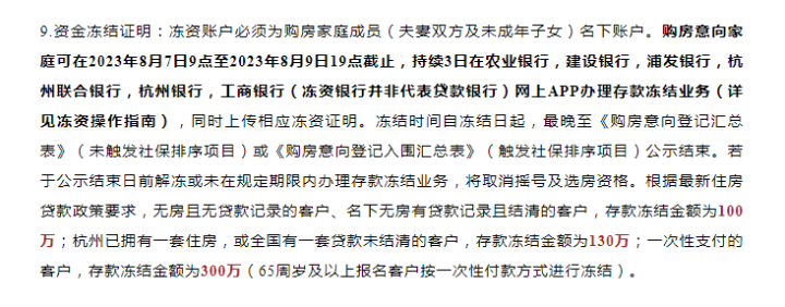 无独有偶,8月下旬刚二开过的咏滨名邸,也将销售方案中的“资金冻结证明”改为“验资证明”,主动降低报名登记门槛。要知道8月上旬咏滨名邸首开时,采取的还是冻资模式,且需等《购房意向登记汇总表》公示结束方可解冻。