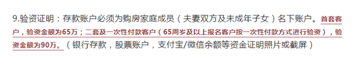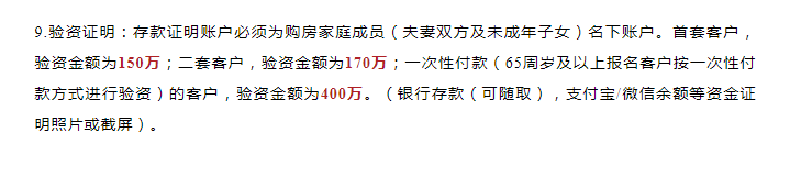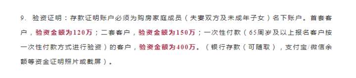 8月31日晚间,江映云邸发布首开房源《销售公示方案》。在登记应上传提交资料“验资证明”一栏中提到:首套验资120万、二套验资150万、一次性付款验资400万,银行存款、支付宝、微信余额等资金证明照片或截屏。
