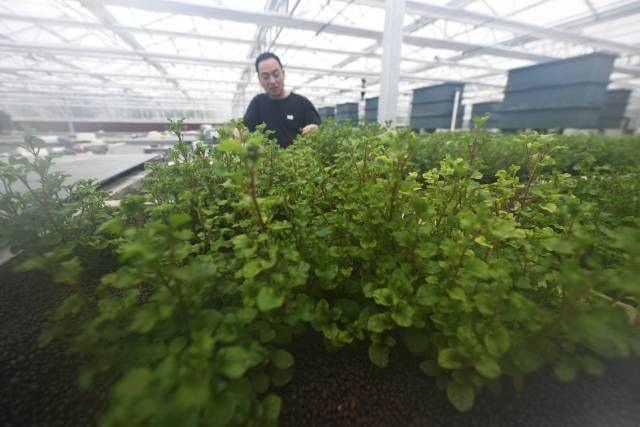今年春季,更楼街道以“街道+村集体+农业大户+村民”党建联建模式,由回乡创业的农创客团队牵头,在石岭村海拔400多米的高山上建起了占地2400平方米的玻璃温室大棚和1200平方米的海水养殖池,采用海水恒温养殖技术,高密度养殖东星斑、老虎斑和南美白对虾、黑虎虾等海鱼海虾,同时栽种锦绣苋、西洋海笋等适应咸水浇灌的蔬菜,形成零排放的海水“鱼菜共生”一体化生态系统,在高山上养出海鲜、种出“海水”蔬菜。