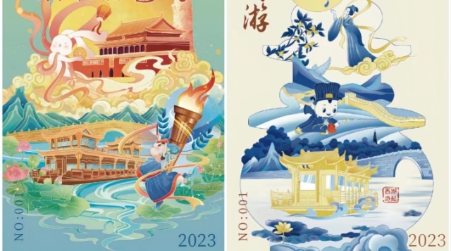 西湖游船工作人员表示,今年中秋恰逢国庆及杭州第19届亚洲运动会,此次发行的中秋限定船票将中秋典故与节日元素相结合,寄予美好的情感,囊括了“玉免东升”的美好愿景,辅以中国传统青花瓷元素、游船IP亚运元素,呈现独具中国特色的视觉效果。