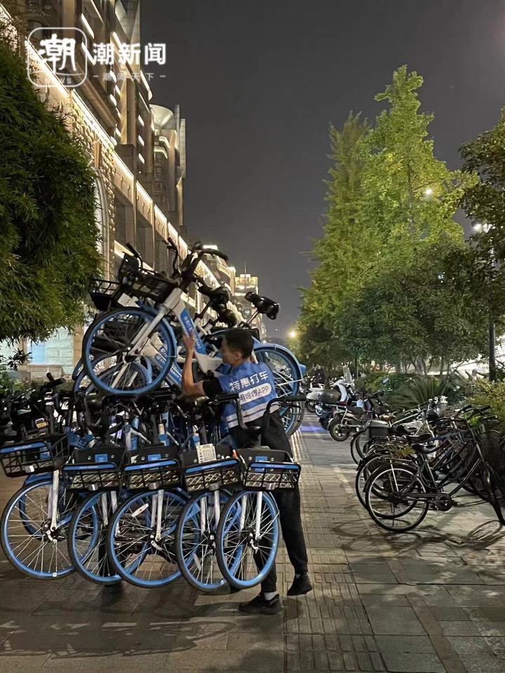 在邰勇昌看来,这份工作其实挺苦,需要韧性。重约三四十斤的单车,运维员平均每天要搬三百来辆。不论刮风下雨还是高温日晒,他们都得正常干活,车辆压盲道、影响正常通行是决不允许出现的情况。