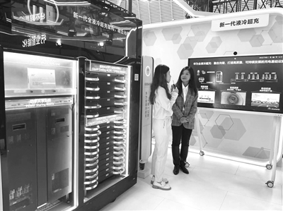 在华为展区,一台发着红蓝光的“大家伙”引起围观。工作人员介绍,这是华为今年推出的新一代液冷超充充电桩,支持市面上全部车型。通过全液冷架构和交直流电叠储系统,这台充电桩的效果可以实现1秒1公里,充电速率也是“遥遥领先”,能比传统充电桩快5-10倍。目前,新品充电桩已经在杭州萧山区梅林村和拱墅区庆隆新能源场站投入使用。