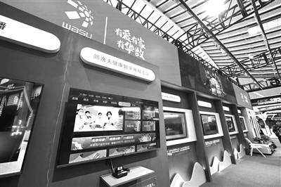 华数展区,最受欢迎的是和邵逸夫合作的健康数字电视专区。