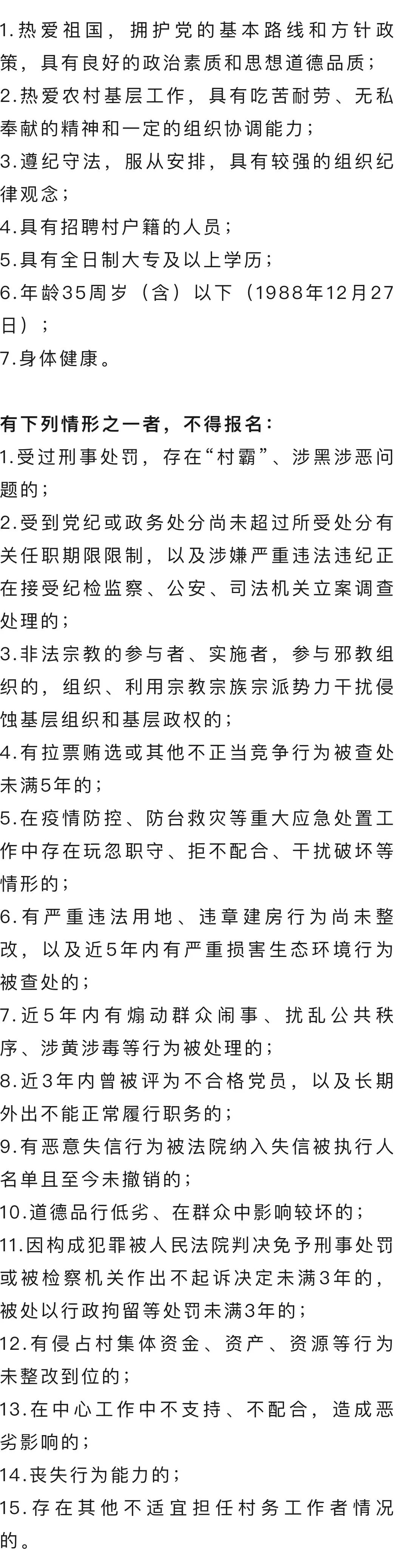 (3)村现任三副班子成员直系亲属不得推荐和报名。