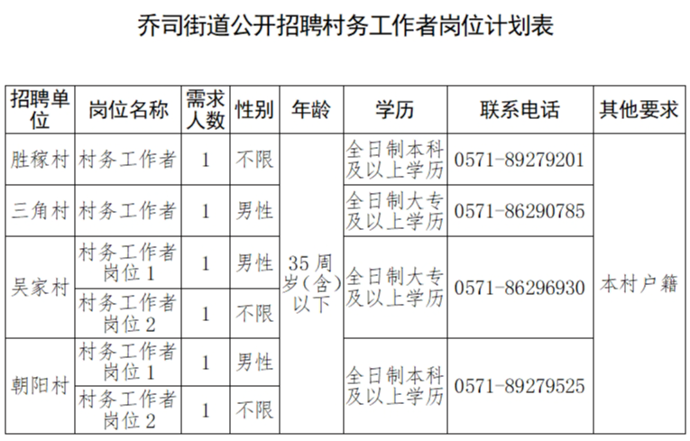 为了进一步加强乔司街道农村基层组织建设,培养村级干部队伍后备力量,引导和鼓励优秀青年到基层工作,提高村级组织服务党员群众的能力。经街道党工委研究,决定开展村务工作者公开招聘工作,现将有关事项公告如下: