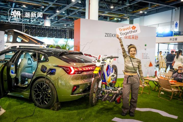 3月23日,搭载拖车钩的新能源车亮相本届户外露营生活展。