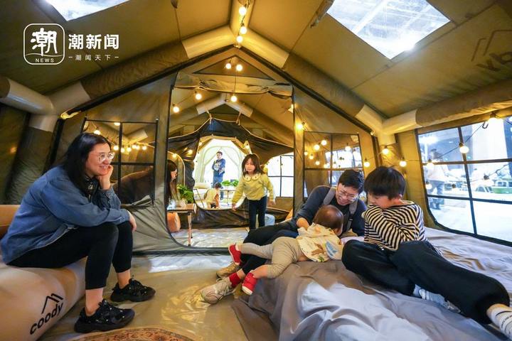 3月21日,展会现场不乏带着家人一起来感受户外露营魅力的参观者。