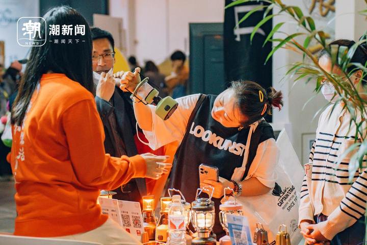 3月23日,展会上展出的露营灯吸引了户外爱好者的目光。