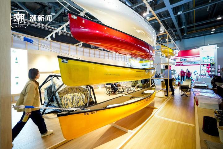 3月23日,户外露营生活展上展出了各式各样的户外运动装备。