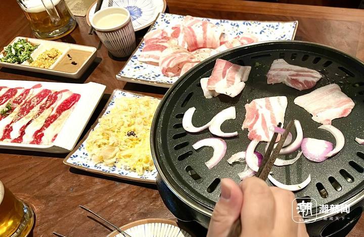 在城北夜宵圈里,蔡马洪涛烧烤的名气是响当当的。在洪涛烤肉店,炭火炉子上架着铁盘,鲜嫩的五花肉、肥牛、酸菜、生蚝等食材滋滋作响,升腾起烟火气。三位店员在坐满食客的餐桌边穿梭,三五好友落座后大快朵颐,气氛也热烈起来。