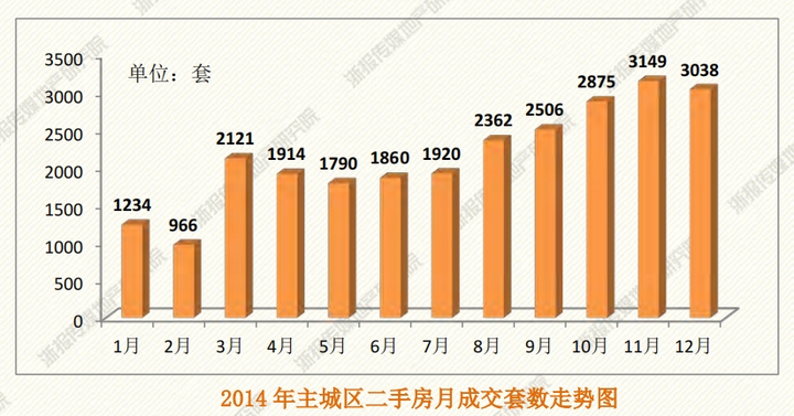 二手房方面,杭州主城区二手房成交量并没有显著上升,纵使是全年成交量最高的11月,成交量也不过3149套。