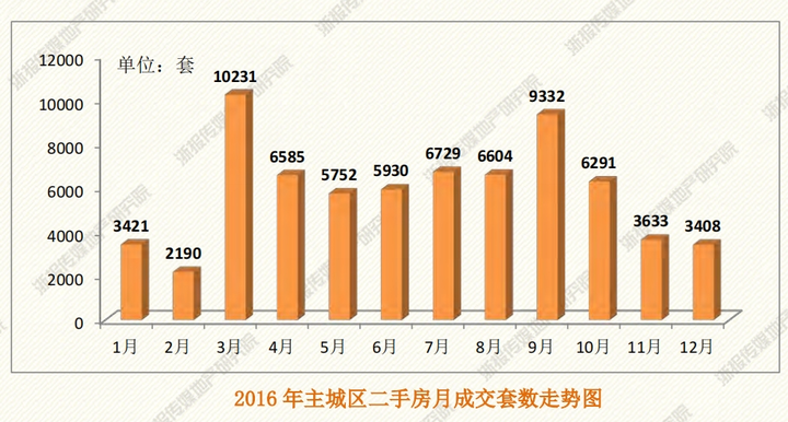 2016 年,杭州市主城区二手房总成交超7万套,创历史新高。其中,3月单月的二手房成交量破万。