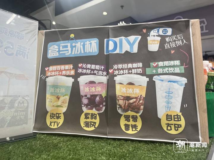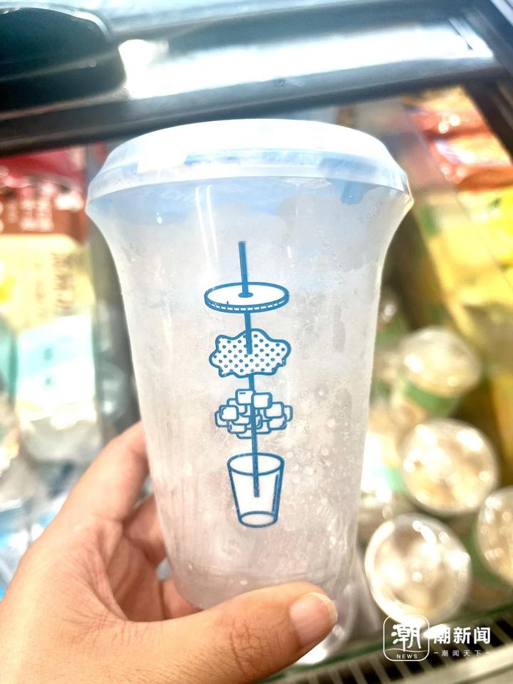 “很多顾客选择直接在店里买瓶饮料,再加购一个原味冰杯。把饮料直接倒进冰杯里,就得到了一杯消暑解渴的冰饮。一到夏天,喜欢这种组合的年轻顾客就更多了。”店员告诉潮新闻记者,消费热情跟着气温走,不同的饮料混合,能配出不同的口味,这也吸引了很多消费者前来门店DIY。