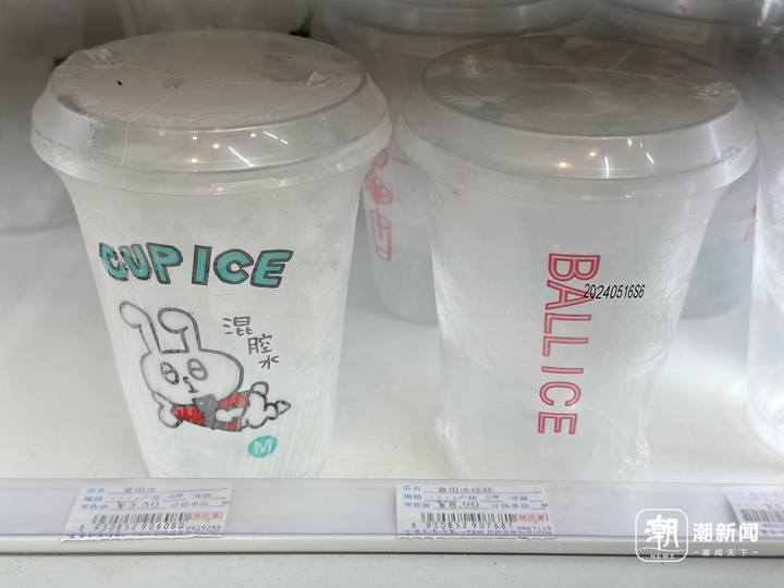 在线下门店,年轻人追捧的冰杯也悄悄上新了,价格从3.5元~8.9元不等。在一家全家便利店,潮新闻记者看到,这里一共上架了四个品牌的冰杯。最常见的是食用冰杯和食用冰球杯,价格为3.5元/杯和8.9元/杯;另有品牌直接推出大包装的“食用冰袋”,零售价在8.8元/份。
