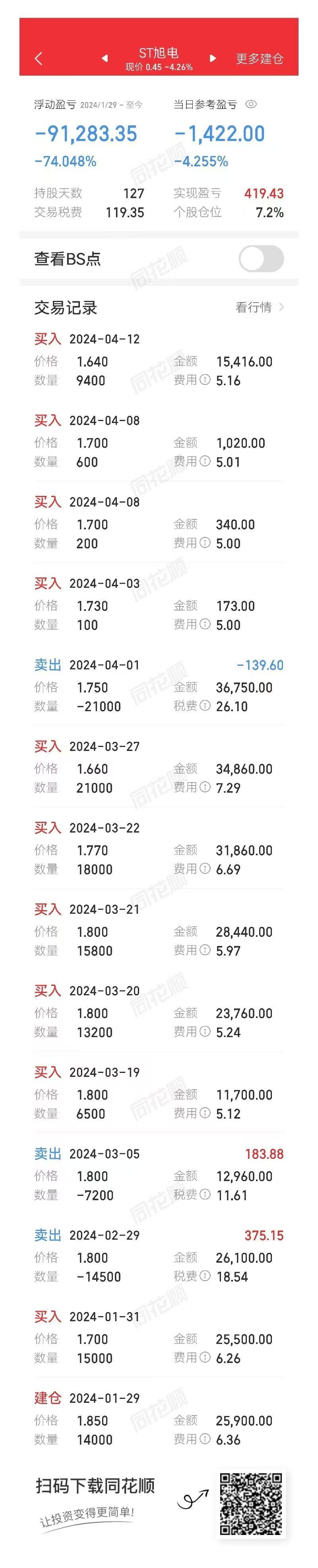 然而从2017年开始,ST旭电就走上了漫漫熊途,在业绩连年巨亏的同时,股价持续下跌,也让许多想抄底的股民深套其中。2019年到2023年,公司的亏损额分别达到15.23亿、34.03亿、28亿、16.46亿和16.04亿。今年一季度又亏了2.97亿,公司预计上半年亏损额为1.8亿至2.7亿。