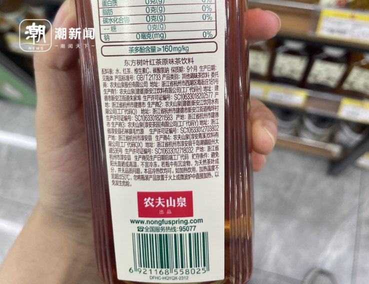 无糖茶饮料配料表。潮新闻记者 车轶婳 摄