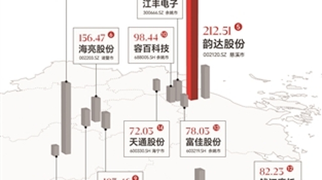 余姚企业IPO势头比慈溪激进。回望2021年,宁波A股上市公司破100家时,余姚还以9家与慈溪并列宁波第5。而今,余姚A股上市企业已达17家,大超慈溪。余姚最早的上市公司是宁波富达,1996年7月16日在上交所上市。有两家市值在百亿上下的企业,分别是江丰电子、容百科技。龙头企业江丰电子今年上半年归母净利润为1.61亿元,同比增长5.32%。