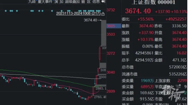 A股的大涨行情还在继续,上午9:25分开盘后,A股三大指数节后首日大幅高开,上证指数高开10.13%,深证成指高开12.67%,创业板指高开18.44%。北证50指数高开26.67%。证券、半导体、房地产板块批量涨停。