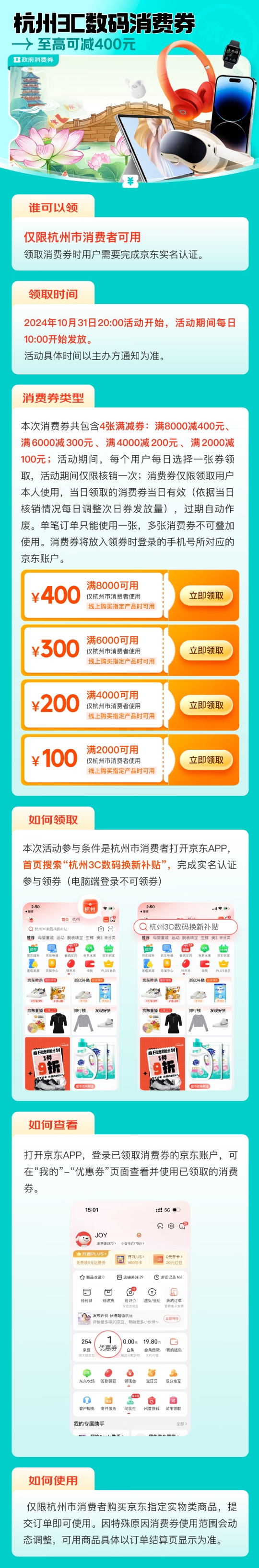 10月31日起,杭州市富阳区陆续发放3C数码消费券,总额度1000万元;还有商超促消费专项消费券,总额度600万元。每天准时开抢!
