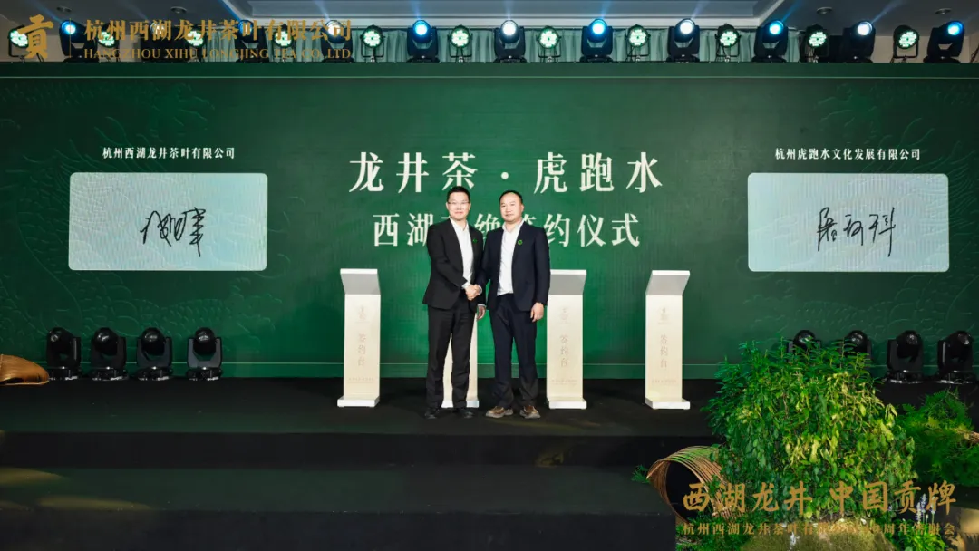 作为品牌联盟的重要举措,“西湖双绝”——龙井茶与虎跑水的战略合作协议也在现场签署。杭州西湖龙井茶叶有限公司与杭州虎跑水文化发展有限公司携手,致力于将这一经典搭配升级为高端定制产品,为消费者提供极致的品茶体验。据了解,公司还与10家经销商完成首批千万订单签约,进一步巩固品牌市场布局。