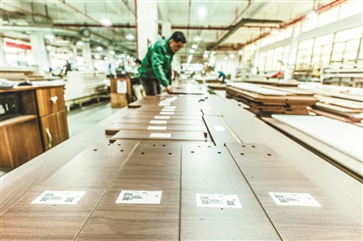 生产负责人何清望拿起一块板件,再次用数字化终端一扫,从物料到产品的所有信息都显示其上——订单号、批次号,甚至还能向前追溯到每件物料的操作工序等。“通过这种手段,在客户安装时,就能及时精准地处理质量问题。”