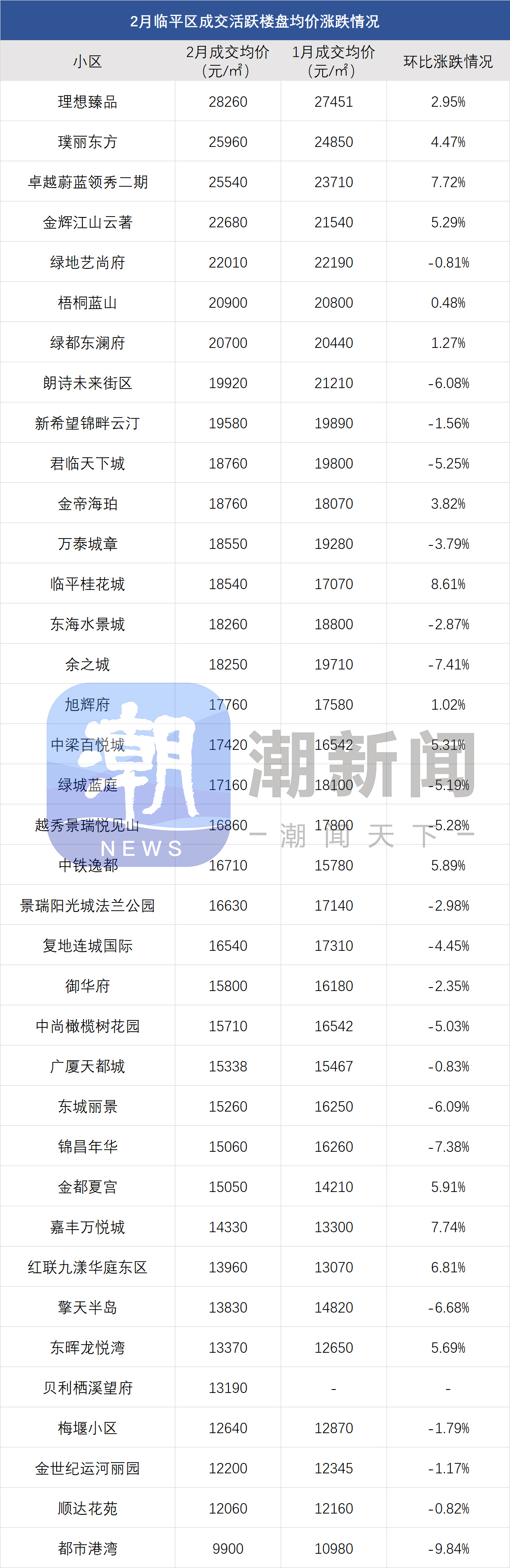 注:一、以上数据来源于中指研究院,统计为2025年2月二手房成交均价,2025年1月二手房成交均价;二、在不同成交时期,成交的物业类型(别墅、排屋、公寓等)、精装与否、户型大小、楼层与楼幢位置的不同会造成价格变动;三、有些房源为了减少税费,会稍微压低成交单价;而有些二手房为了增加银行贷款,也有可能稍微做高单价,具体房源信息建议去实地看看。