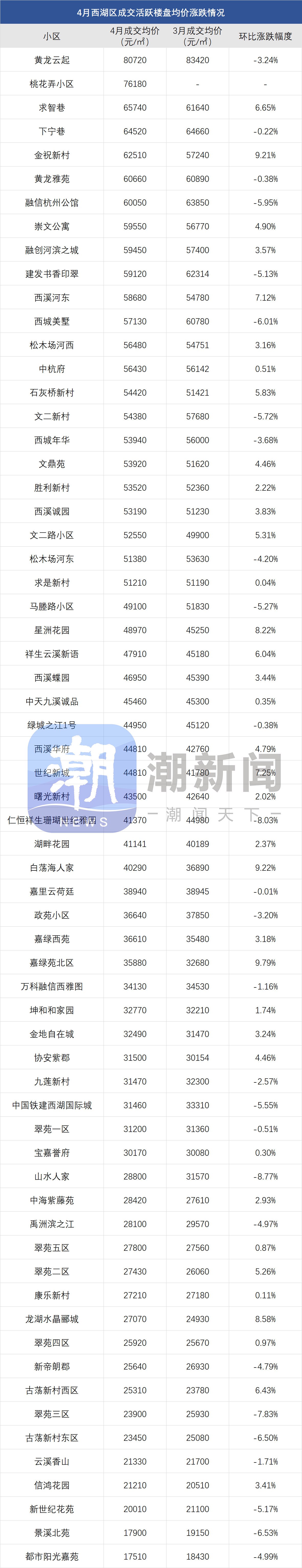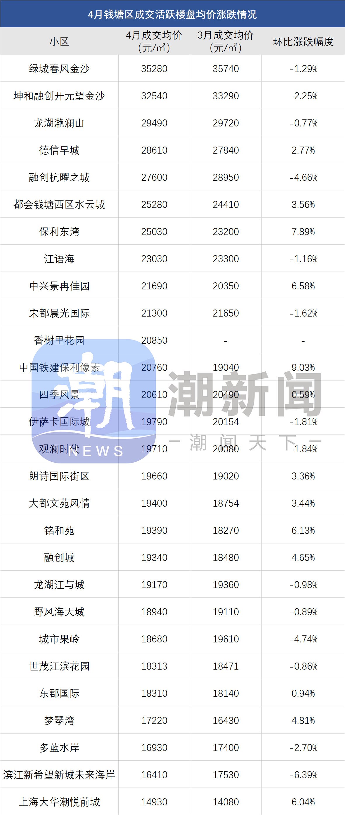 另外,4月还有一些成交相对活跃的小区延续了3月份的市场惯性,二手房价格仍有小幅上涨。比如申花板块的杭曜置地中心、星瓒颂锦府,4月成交均价环比涨幅在1%左右;文晖板块的锦尚和品府,环比涨3%;江河汇的绿城留香园,成交价环比涨幅2.29%;南星桥板块的绿城春江花月,环比涨幅3.36%。