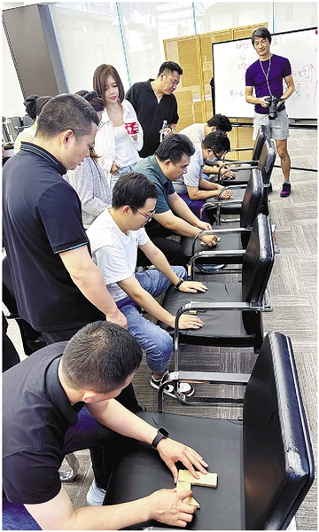学员们在沙盘模拟课程中努力为自己的“企业”挣“经费”。