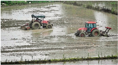 连日来,在余杭区良渚街道东塘河村的连片农田里,农机手抢抓农时,驾着“铁牛”整地修畦、犁田插秧,进行全机械化晚稻种植作业。近年来,余杭区积极推进科技强农、机械强农“双强”行动,有效提升了粮食生产效率,全面促进农业高质量发展。