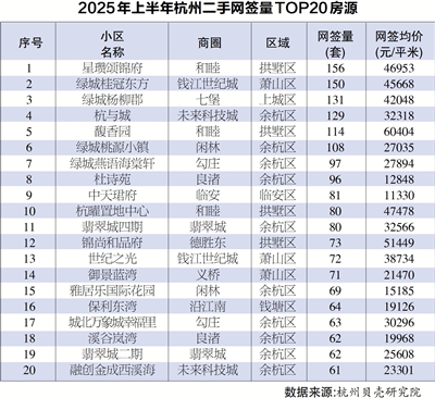 上半年杭州二手房的成交量“冠军”,是拱墅区申花板块的星瓒颂锦府,“亚军”是亚运村板块的桂冠东方城,均是刚交付不足一年的次新房。