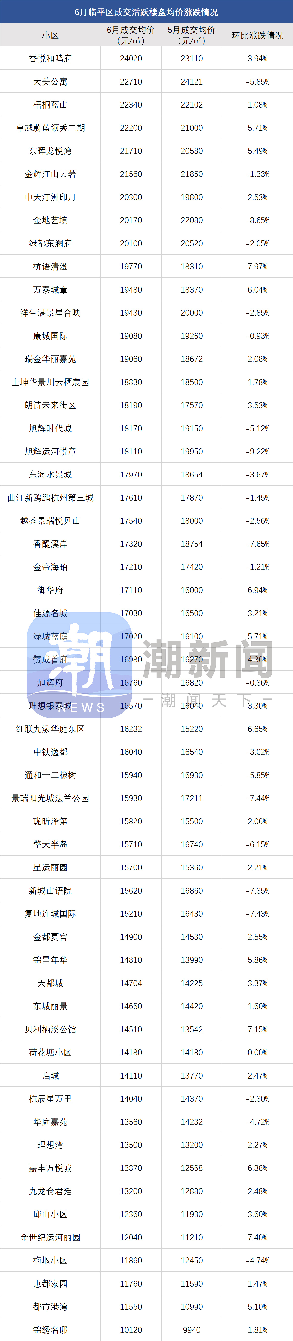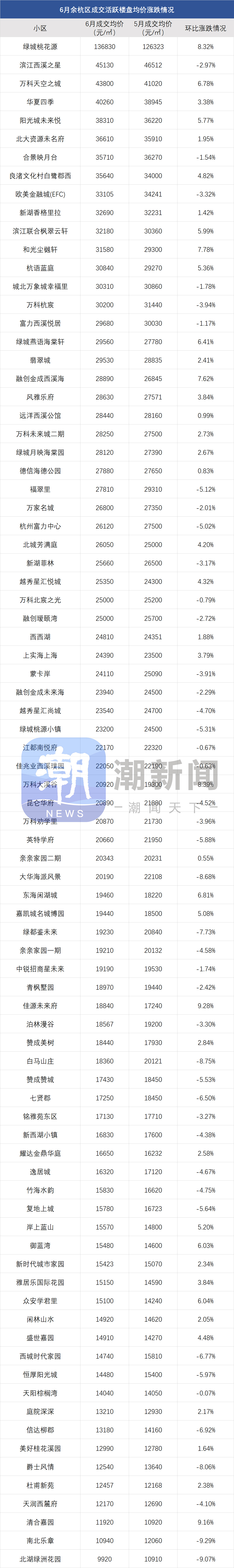 还有馥香园和杭曜置地中心,6月成交量比3、4月下滑明显,不过价格依旧稳定。馥香园6月成交均价比5月涨了4.4%,杭曜置地中心则比5月涨了0.75%。