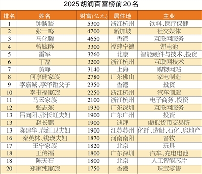 此外,胡润认为,币安赵长鹏、小米雷军、宁德时代曾毓群,均保有冲击中国首富的潜力。