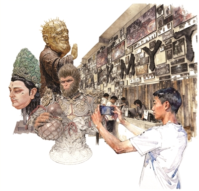 在陈明鑫看来,黑神话线下店的亮眼之处,在于打造“零售+体验+餐饮+观展”的复合模式,让消费行为升格为一次完整的文化沉浸。