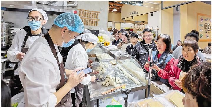“你们做不做酒酿馒头?”“这个真不会,我们只会做北方的包子。”“我特意从滨江赶来的,我也是山东人,来尝尝家乡的味道。”拉家常般的闲聊间,一笼笼冒着热气的包子出炉,很快就被抢购一空,赵唯宏看了眼店铺前依旧看不到队尾的买包队伍,加快了擀面皮的手速。