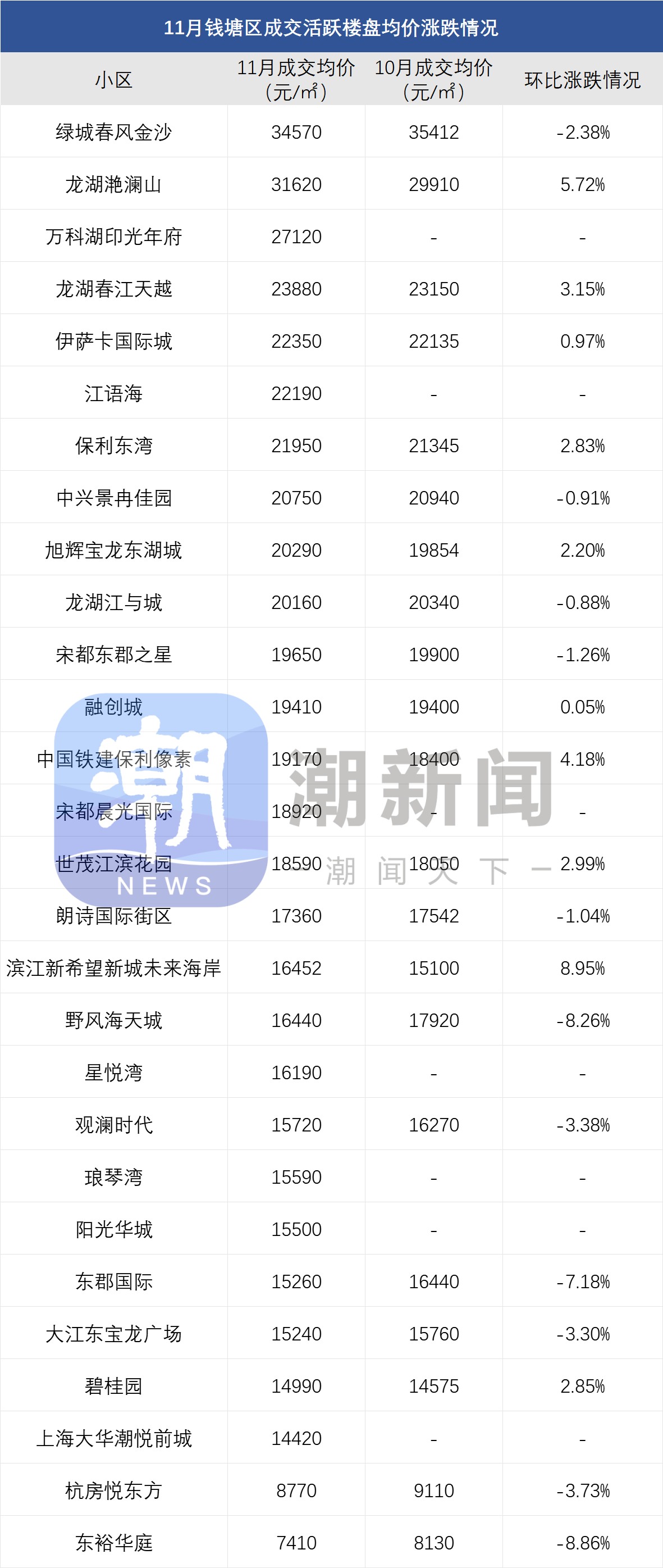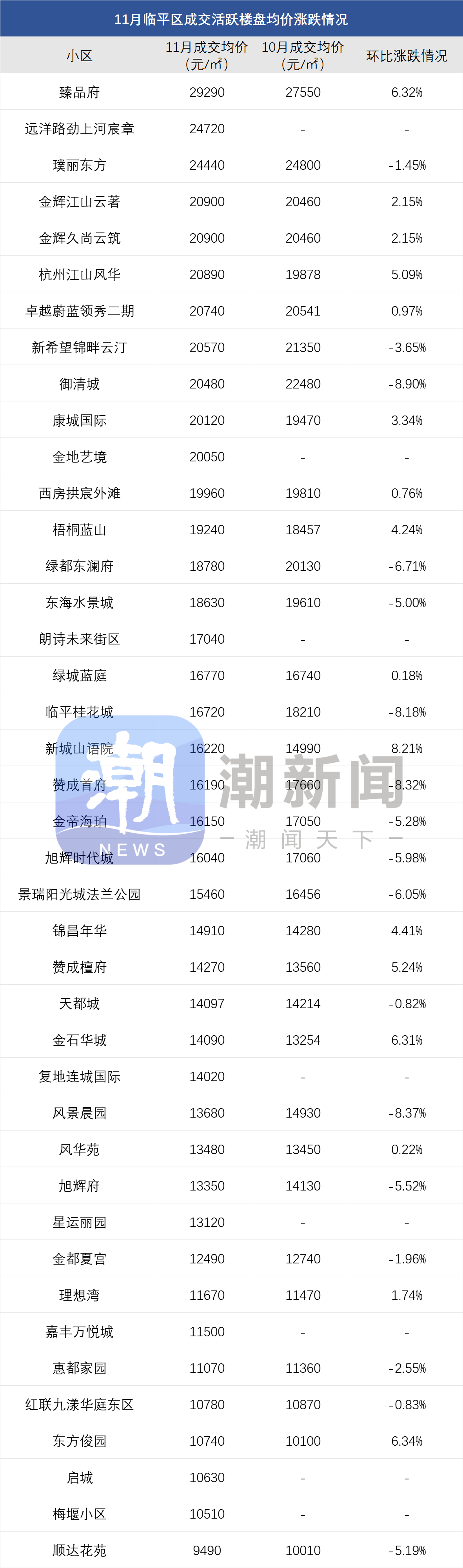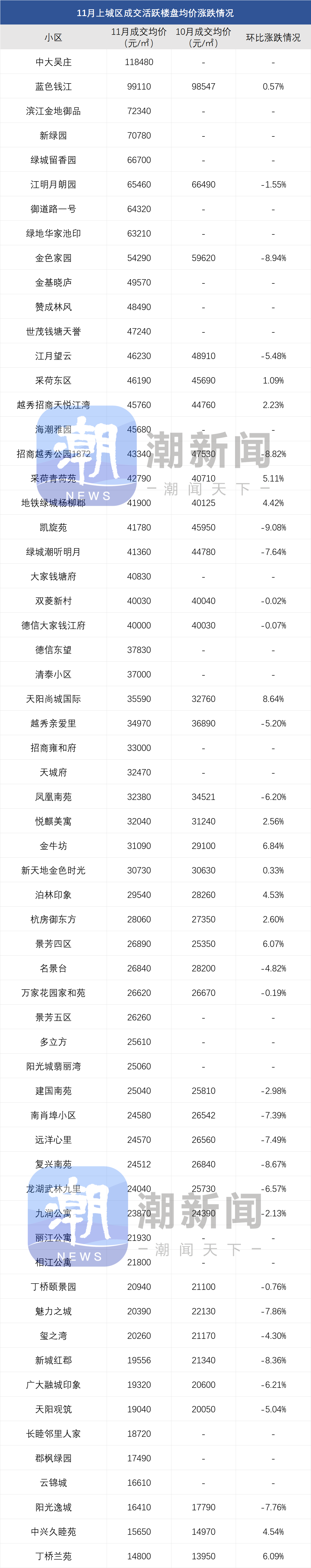 注:一、以上数据来源于中指研究院,统计为2025年11月二手房成交均价,2025年10月二手房成交均价;二、在不同成交时期,成交的物业类型(别墅、排屋、公寓等)、精装与否、户型大小、楼层与楼幢位置的不同会造成价格变动;三、有些房源为了减少税费,会稍微压低成交单价;而有些二手房为了增加银行贷款,也有可能稍微做高单价,具体房源信息建议去实地看看。