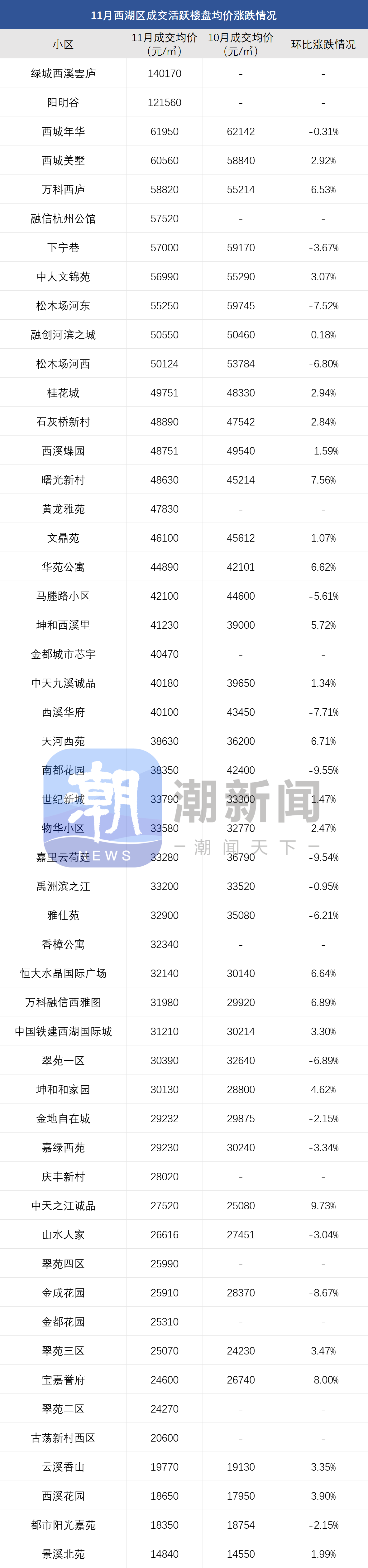 (原标题:最新杭州二手房价涨跌榜:低总价房源撑起年底“翘尾”行情,最低7410元/㎡)
