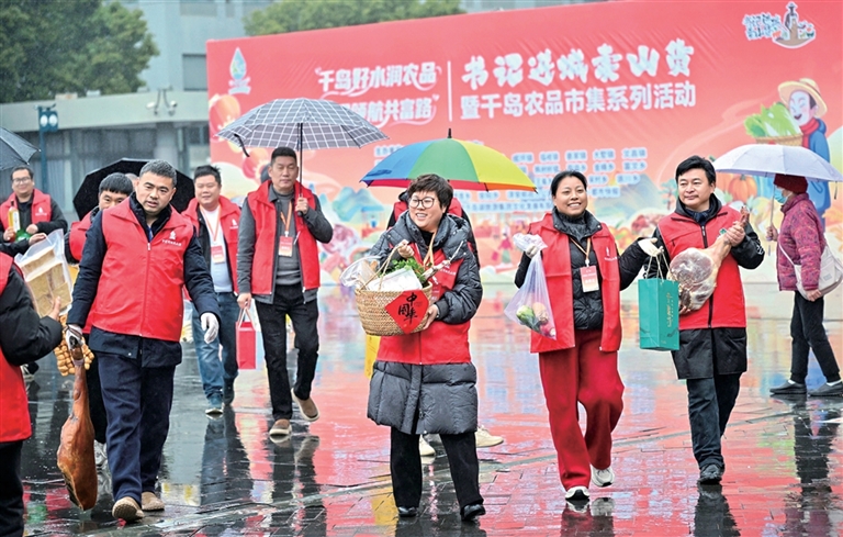 “千岛湖绿水青山,农产品绿色健康,‘书记进城卖山货’,吃着更放心。”“新手奶爸”王先生曾在“书记进城卖山货”直播间里网购,现场看到书记们带来的玉米饼、梅干菜饼、日晒面等许多女儿爱吃的乡村美食时,眼前一亮。“我女儿1岁多,淳安的玉米饼一吃就是两三个,它的用料非常干净,就是玉米和水。周六我打算带娃一起来逛逛。”