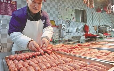 最忙的一天,于赛华灌了2000多公斤香肠。记者 步恩撒 摄