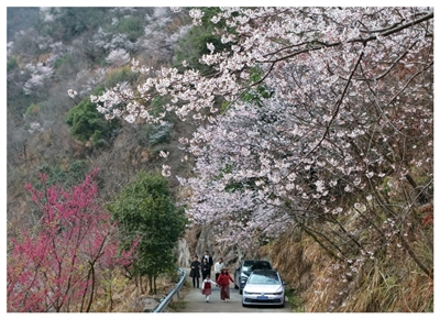 在“浙西天路”打卡野樱花
